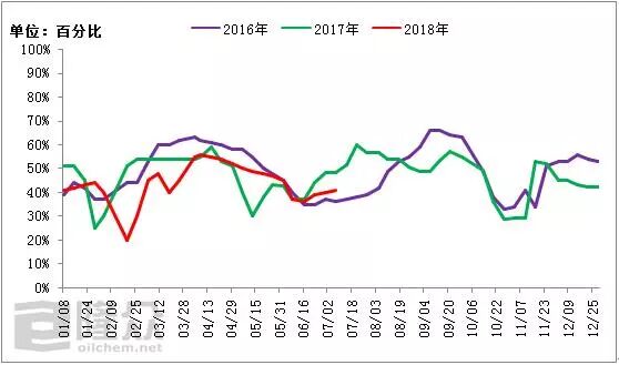 上半年的復(fù)合肥裝置開工有幾個折點,首先是農(nóng)歷的新年,在春節(jié)期間,絕大多數(shù)數(shù)的復(fù)合肥生產(chǎn)企業(yè)停車,就算未停車的也是以極低的開工維持,據(jù)統(tǒng)計,春節(jié)期間的復(fù)合肥開工約為2成左右;其次次是春節(jié)過后3月的兩會期間,北方多數(shù)地區(qū)復(fù)合肥開工受影響,裝置開工率在春節(jié)過后提升后再次走低;再次,為四月中旬以后,東北市場用肥結(jié)束,部分肥企進入長時間停車檢修,而進入五月受重大會議影響,山東地區(qū)的復(fù)合肥開始限產(chǎn)50%,環(huán)保回頭看開始檢查,河南、江蘇等地也再受影長,而部分廠家進入生產(chǎn)淡季后也開始例行檢修,因此4月中旬以后,復(fù)合肥市場開工一直在走低,在6月初達到最低,整體開工在三成左右,過后廠家的開工恢復(fù)緩慢,一直低位徘徊,隆眾資訊統(tǒng)計,2018年上半年我國復(fù)合肥裝置的整體開工為44%,較去年同期降低2%。